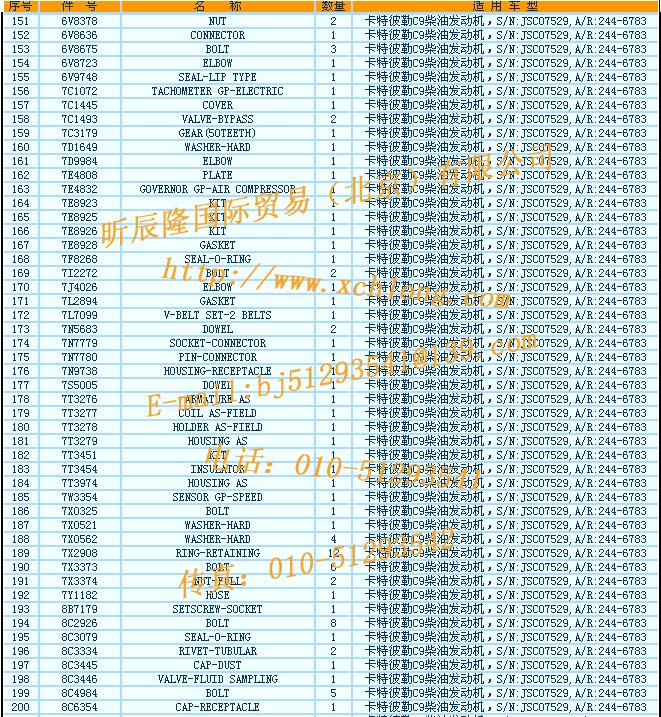 164 7E8923 KIT 1 卡特彼勒C9柴油發(fā)動機,S/N:JSC07529,A/R:244-6783