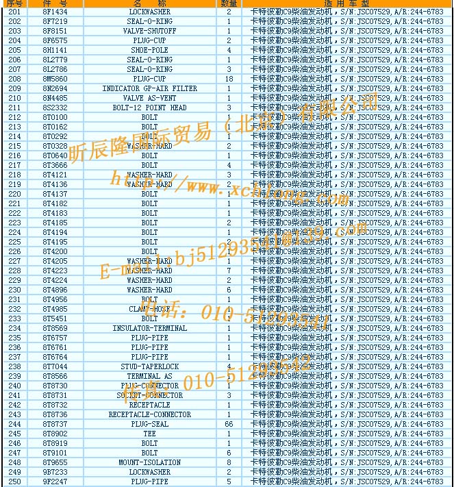 231 8T4956 BOLT 1 卡特彼勒C9柴油發(fā)動(dòng)機(jī),S/N:JSC07529,A/R:244-6783