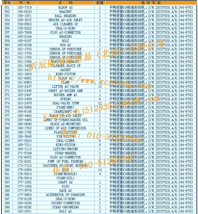 400 183-2931 BOLT AS 3 卡特彼勒C9柴油發(fā)動(dòng)機(jī),S/N:JSC07529,A/R:244-6783